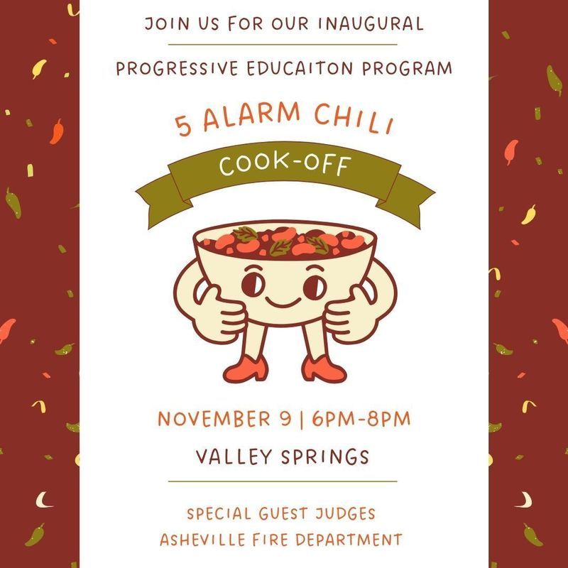 There is a chill in the air and a perfect time to start thinking about what chili recipe you will bring to our inaugural Chili Cook-Off on November 9th! This event is for all staff, students, friends, and families of PEP and will be held at Valley Springs Middle School. We are also inviting our amazing Asheville Fire Department, as special guest judges, to show our appreciation for all they do for PEP. Please reach out to Maria Askea for more information.